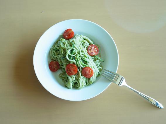 冷静パスタ(麺はそうめんとズッキーニ) 自家製ジェノベーゼソース