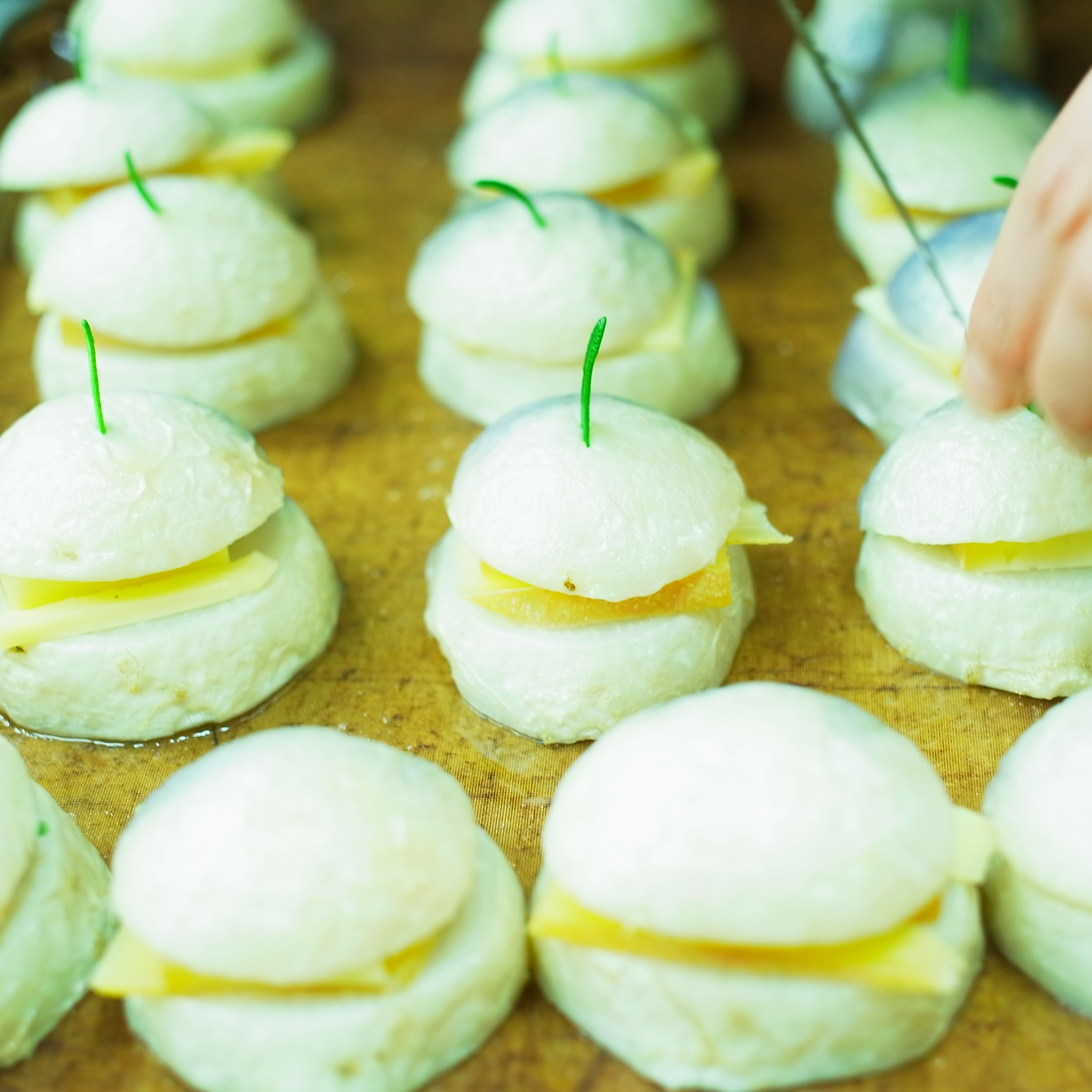 京都山田さんのあやめ雪かぶとラクレットのサンドイッチ。ちょんまげはローズマリーだよ!これからオーブンで焼き上げます!