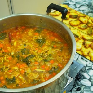こちらも、鍋いっぱいのスパイシーなスープ。おいしさがぎゅっと詰まった野菜に、新宮のスズキが!