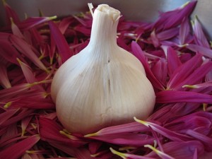 菊の花の絨毯にニンニク鎮座!