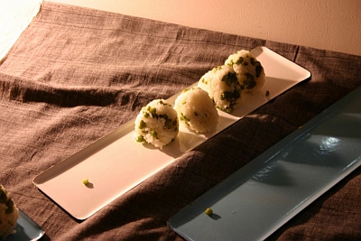 ・新漬けオリーブと緑レンズ豆のおむすび