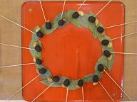 月桂樹の冠にオリーブとカシューナッツのピンチョスをのせて