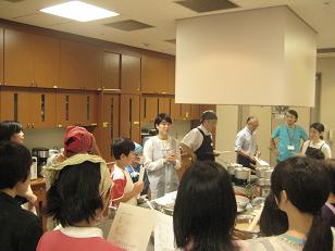 調理の説明を真剣に聞く参加者の皆さん
