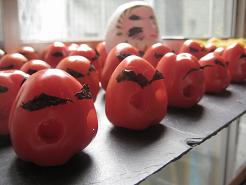 しかし、ここでも達磨にこだわり“にらめっこ”をして