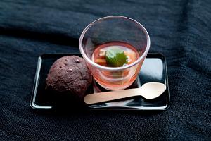 そして、締めくくりの甘味は、ルバーブのスープとお萩
