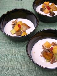 洋ナシといぶりがっこのクリーミーな白和え
