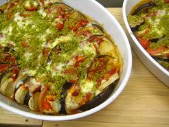 ナス・トマト・玉白茸のチーズパン粉焼き