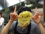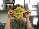 (蛸の顔のように焼けたクレープでお面ごっこをしてみたり・・・・・)